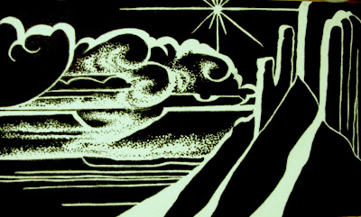 Just a little doodle today. My camera died this week, and just before a bucket-list moment too--my first visit to Meteor Crater in AZ. The half moon was rising above the crater's edge, and it would've been a beautiful shot! But...dead camera. Dang! So, until I get a replacement, I have to use other means to show my doodles...like my laptop's camera.